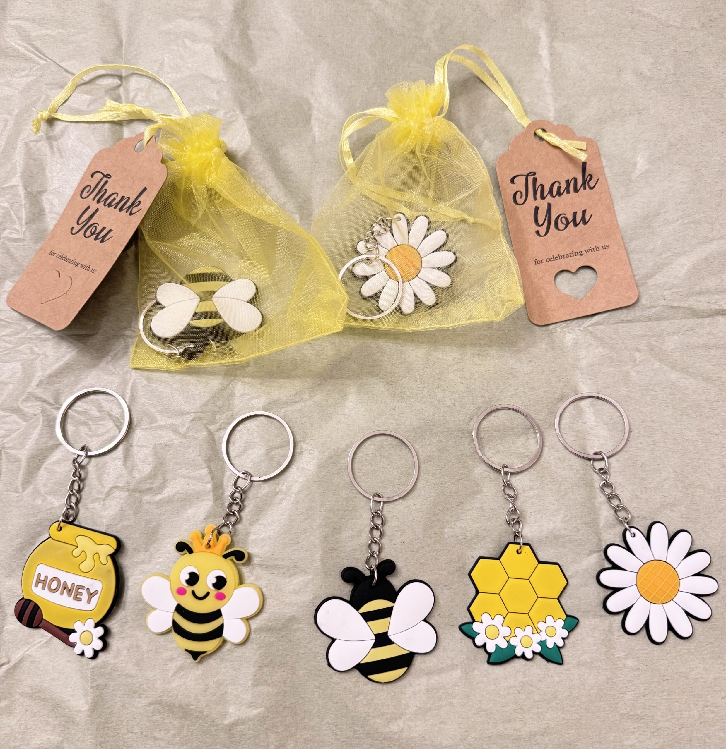 En charmig bi-nyckelring som hyllar naturens små hjältar – perfekt som en symbol för hållbarhet och kärlek till bin!